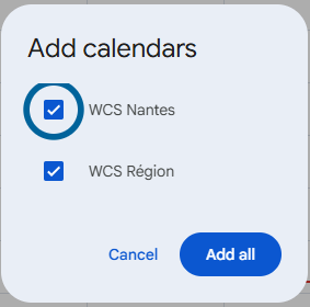4) Cocher les 2 calendriers et cliquez sur “Add all”